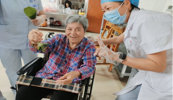 活動結(jié)束后,醫(yī)護(hù)人員將粽子和香囊送給每一位老人,為他們送上節(jié)日的祝福。老人們接過粽子和香囊,眼中滿是感動和喜悅。這份小小的禮物,不僅承載著濃濃的節(jié)日情誼,更傳遞著服務(wù)部對老人們深深的關(guān)愛和祝福。